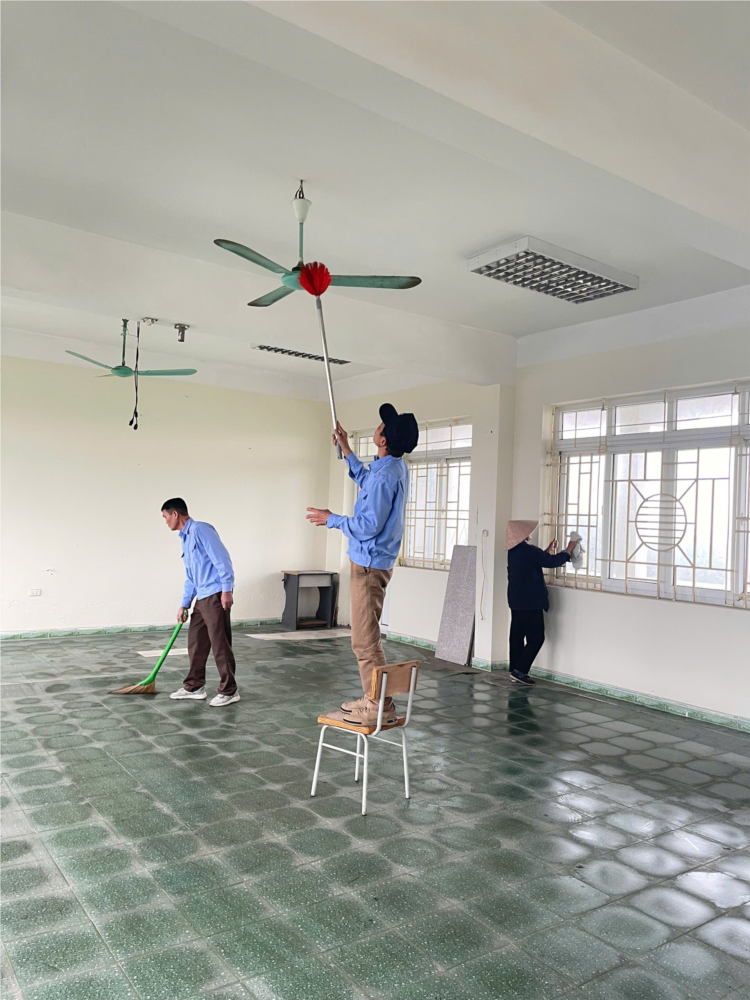 sinh lớp học, chăm sóc môi trường xung quanh để tạo nên không gian học tập