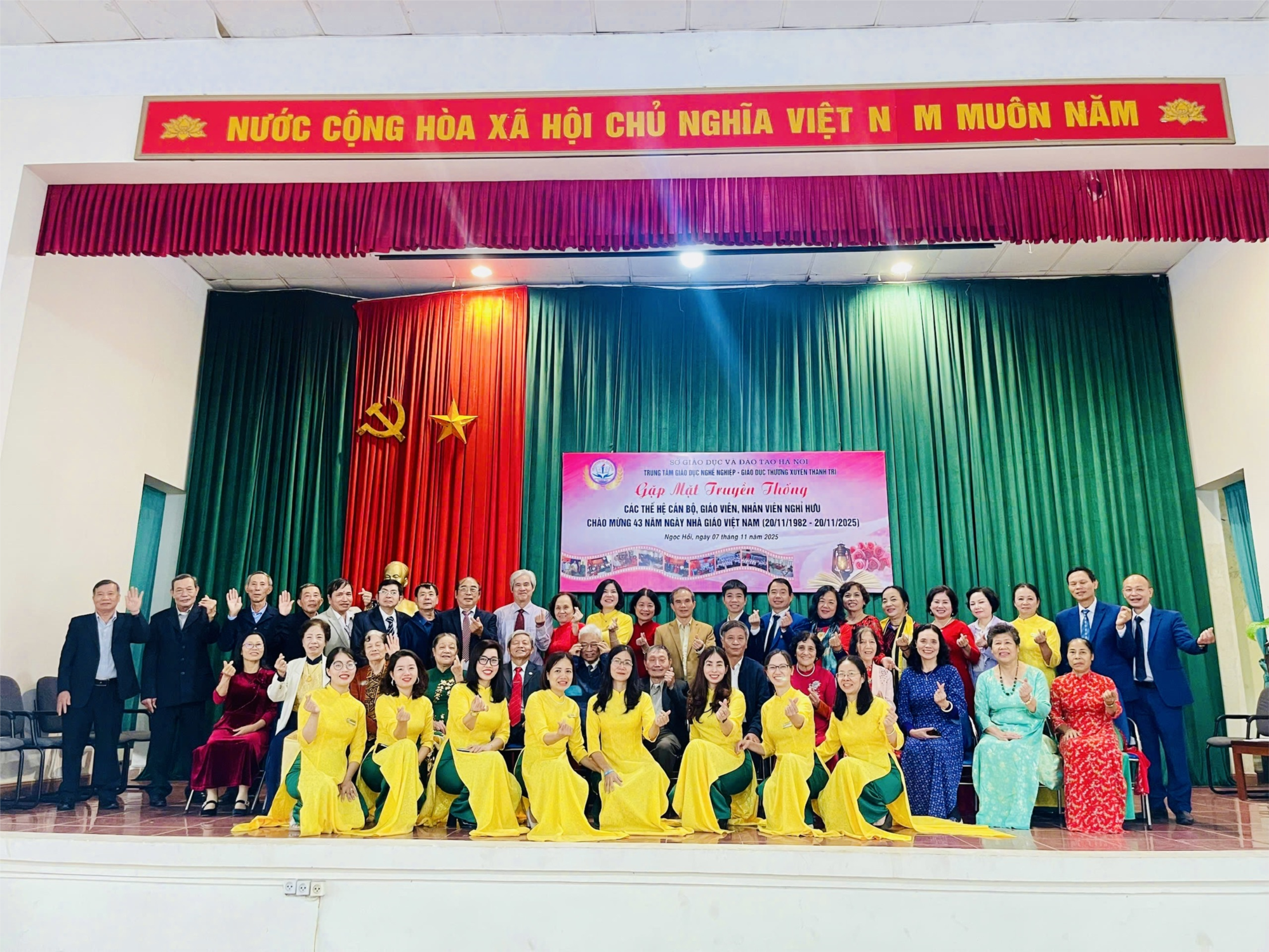Hoà trong không khí hân hoan của cả nước hướng về kỷ niệm 43 năm Ngày Nhà giáo Việt Nam (20/11/1982 - 20/11/2025), sáng ngày 07 tháng 11 năm 2025, Trung tâm Giáo dục nghề nghiệp - Giáo dục thường xuyên Thanh Trì long trọng tổ chức buổi gặp mặt cán bộ quản lý, giáo viên, nhân viên Trung tâm qua các thời kỳ tại cơ sở 1 (Xã Ngọc Hồi, TP Hà Nội).