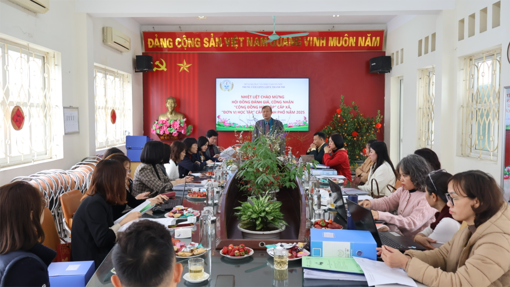 Chiều thứ Ba, ngày 10/02/2026, Trung tâm GDNN – GDTX Thanh Trì vinh dự đón Hội đồng đánh giá, công nhận danh hiệu “Cộng đồng học tập” cấp xã và “Đơn vị học tập” cấp thành phố năm 2025 về làm việc và kiểm tra thực tế.
