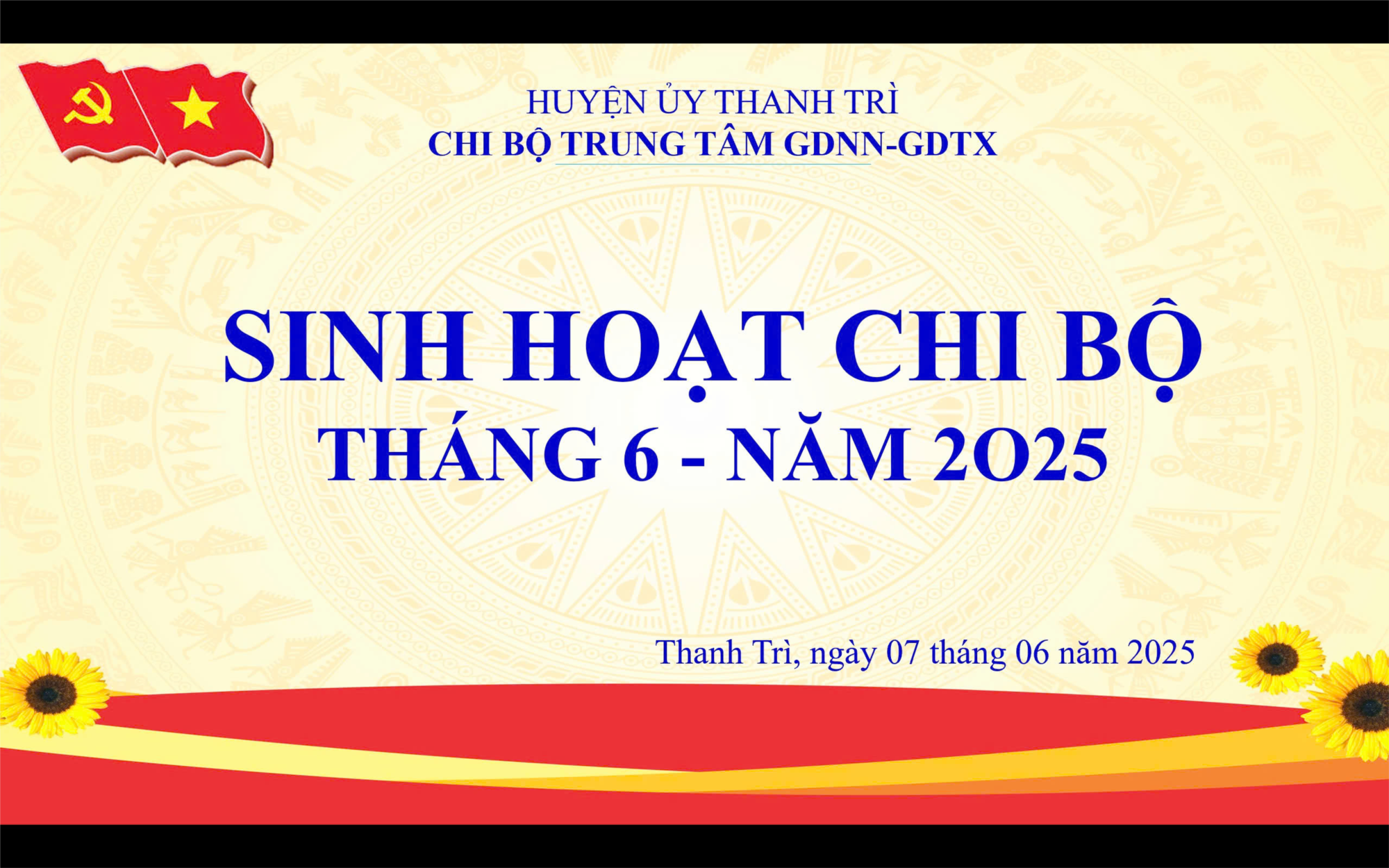 Thanh Trì, ngày 7 tháng 6 năm 2025 – Vào lúc 8h sáng ngày 7/6/2025, Chi bộ Trung tâm Giáo dục nghề nghiệp – Giáo dục thường xuyên huyện Thanh Trì đã tổ chức sinh hoạt chi bộ định kỳ tháng 6 tại phòng họp trung tâm với sự tham gia đầy đủ của các đảng viên trong chi bộ. Đồng chí Phạm Thị Hảo – Bí thư Chi bộ chủ trì buổi sinh hoạt.